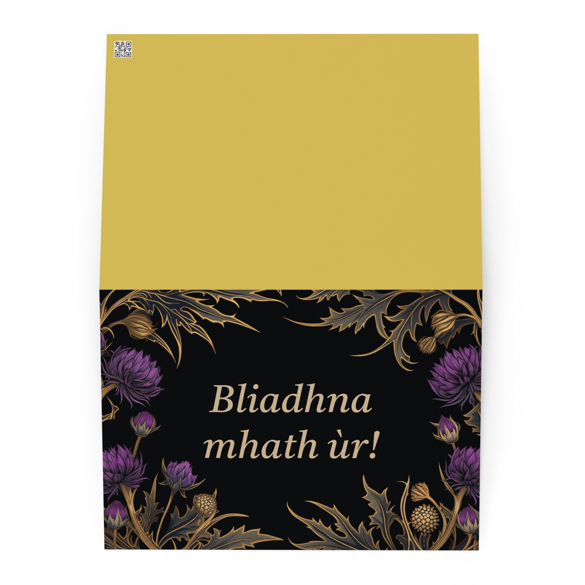 Make someone's New Year extra special with this colorful and festive Scottish (Gaelic) New Year card. Featuring a beautiful botanical design inspired by flora from Scotland, this card is sure to bring a smile to someone's face.