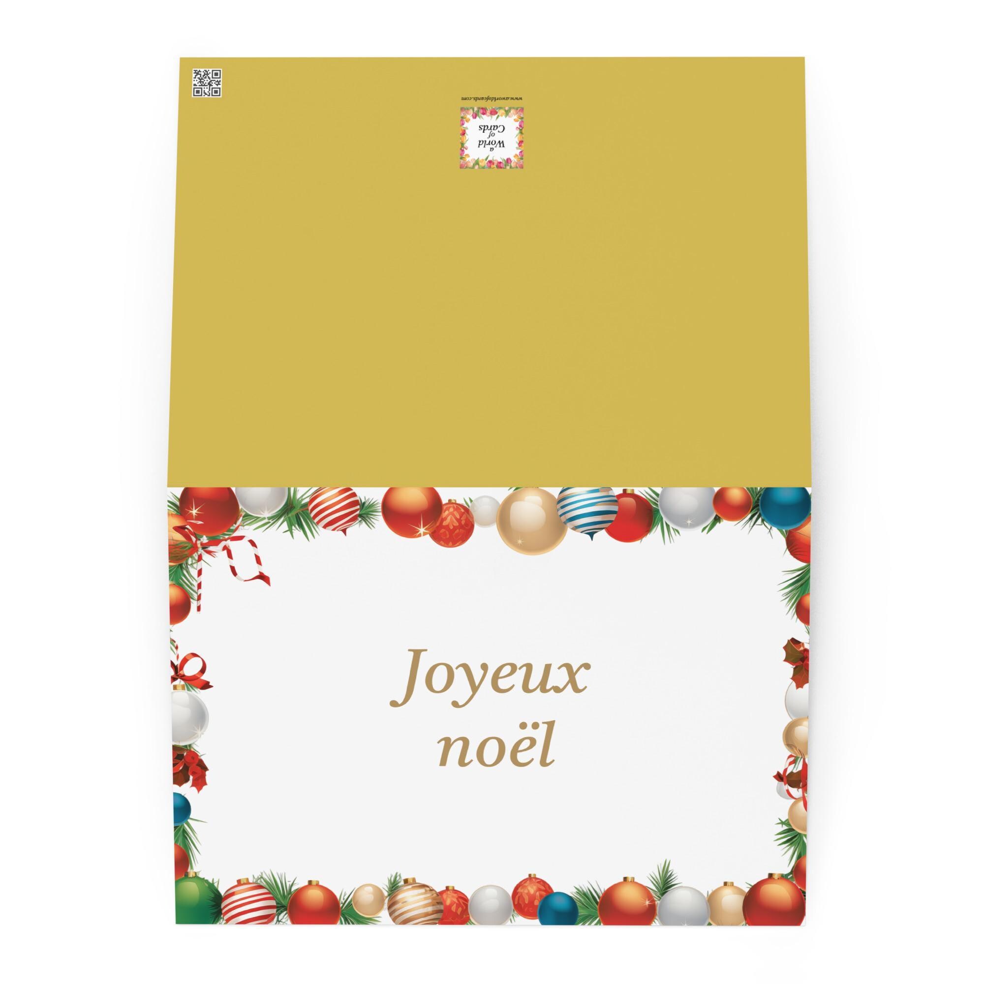 Make someone's Christmas extra special with this colorful and festive French Christmas card. Featuring a beautiful design inspired by Christmas, this card is sure to bring a smile to someone's face.