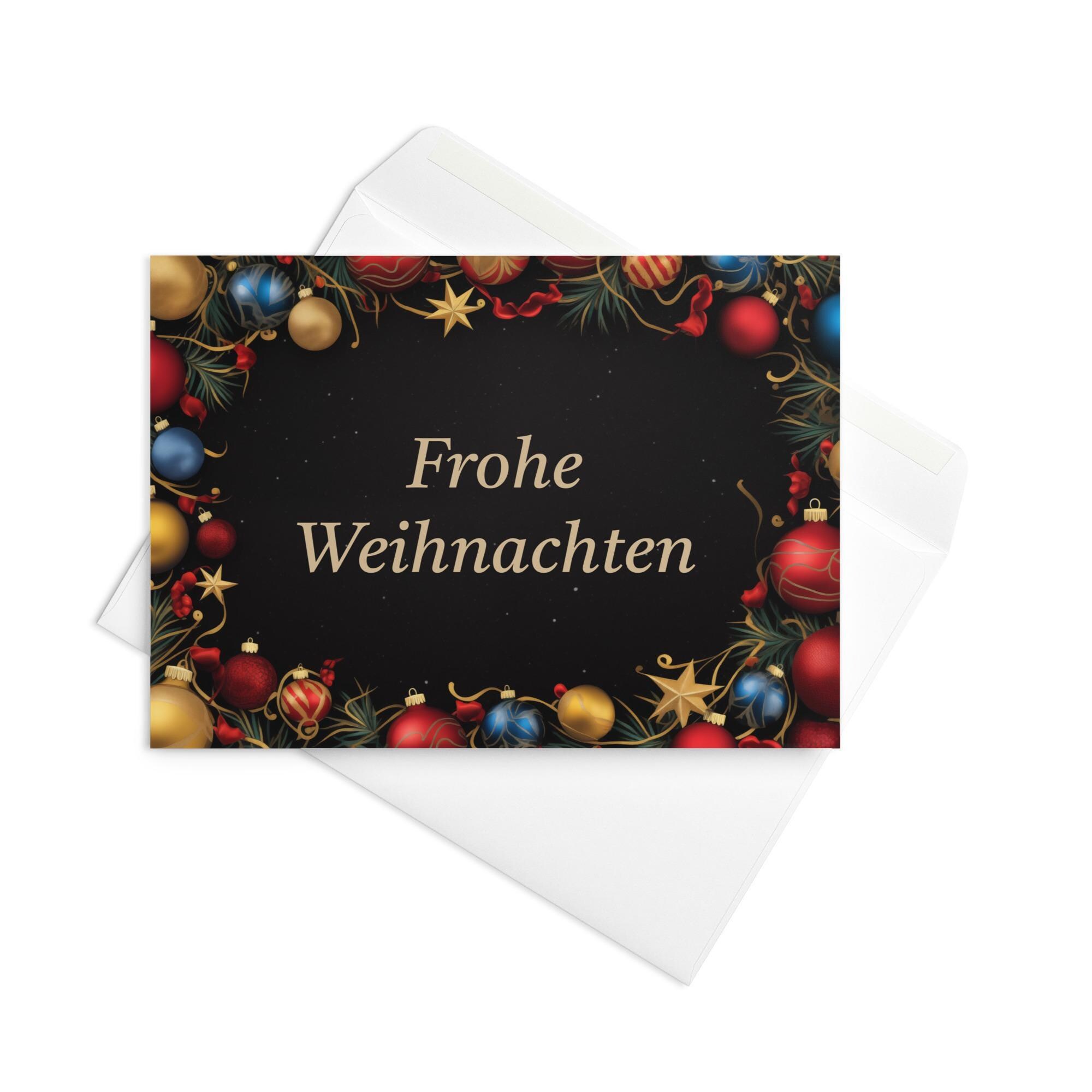 Make someone's Christmas extra special with this colorful and festive German Christmas card. Featuring a beautiful design inspired by Christmas, this card is sure to bring a smile to someone's face.