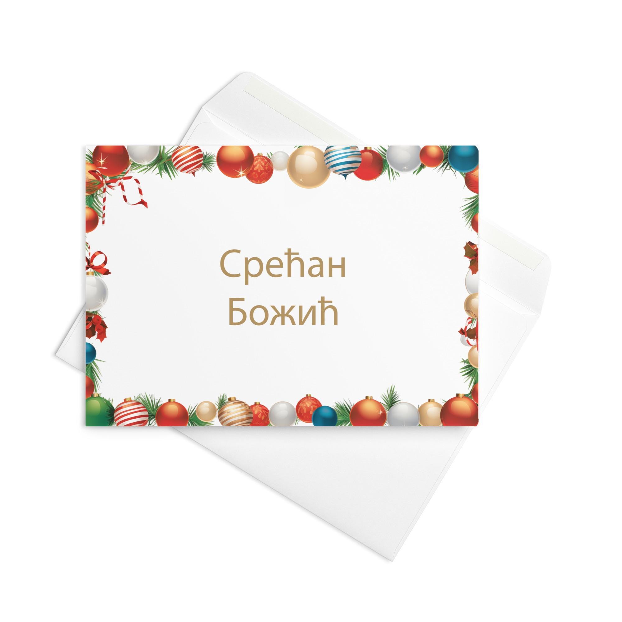 Make someone's Christmas extra special with this colorful and festive Serbian Christmas card. Featuring a beautiful design inspired by Christmas, this card is sure to bring a smile to someone's face.